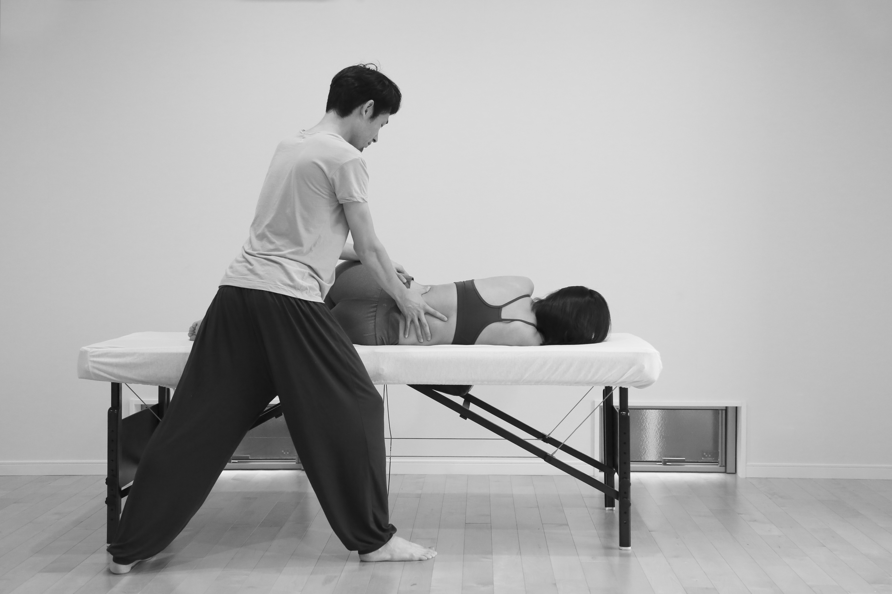 2、徒手療法(筋膜リリース)と自発運動(ピラティス)の掛け合わせ